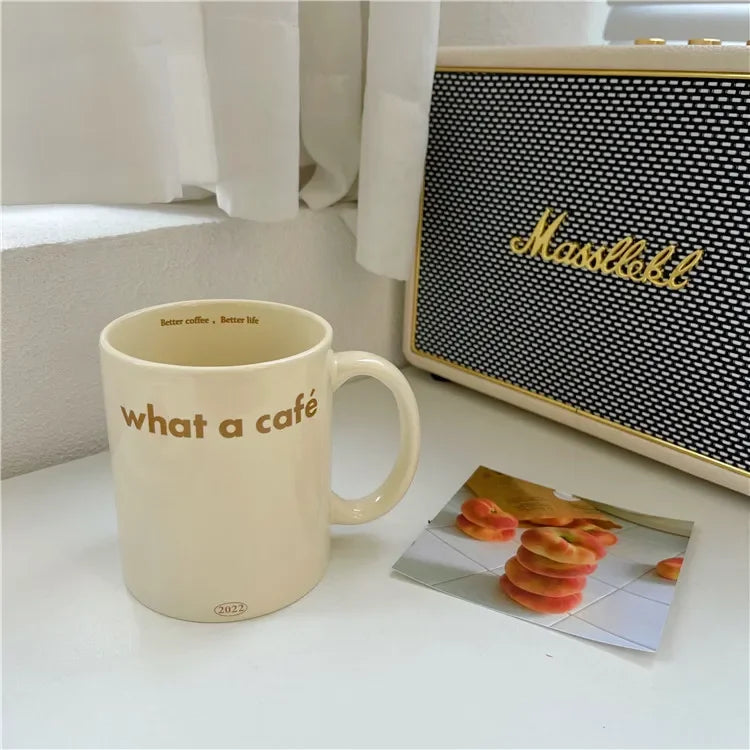 Start your mornings with cozy café vibes using these minimalist ceramic mugs. One design features the warm phrase “what a café”, while the other showcases an adorable teddy bear pattern — both radiating soft, vintage charm perfect for your morning coffee or afternoon tea.